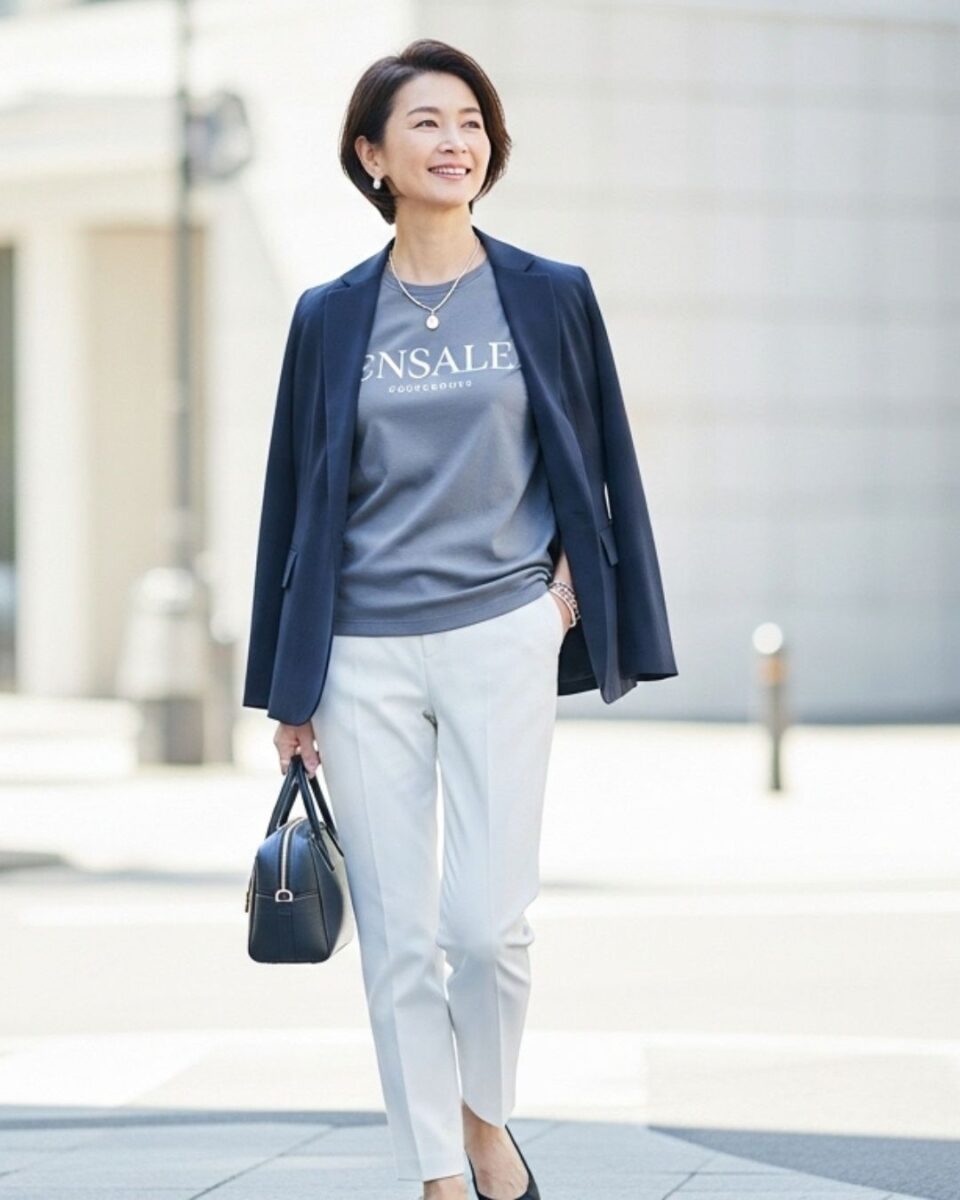 50代らしい上品さを保ちながら、おしゃれに着こなすには、合わせるアイテム選びが鍵になります。