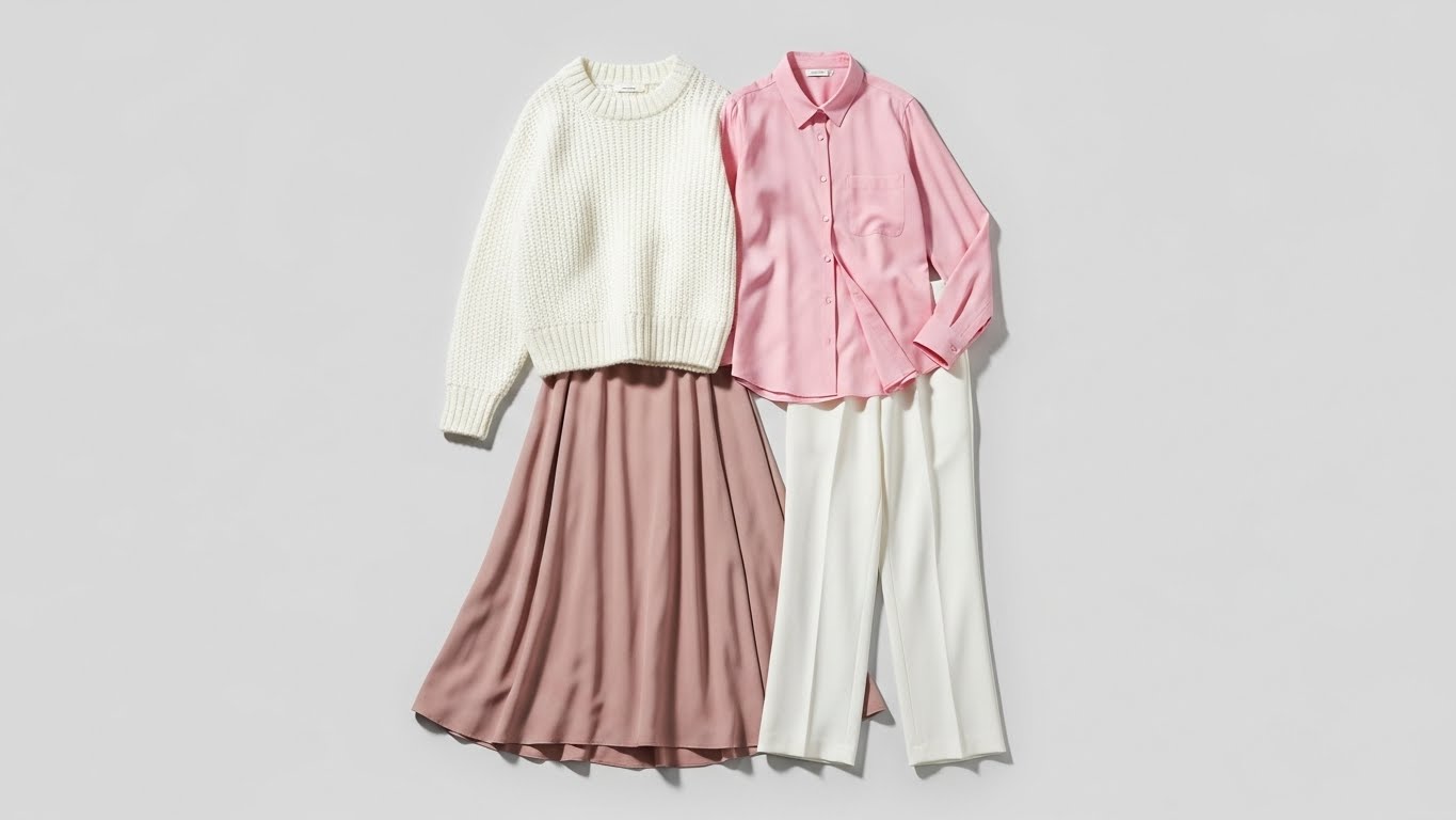 冬は白のニットにピンクのボトムス、夏は白Tシャツにピンクのスカートなど、季節を問わず活用できます。