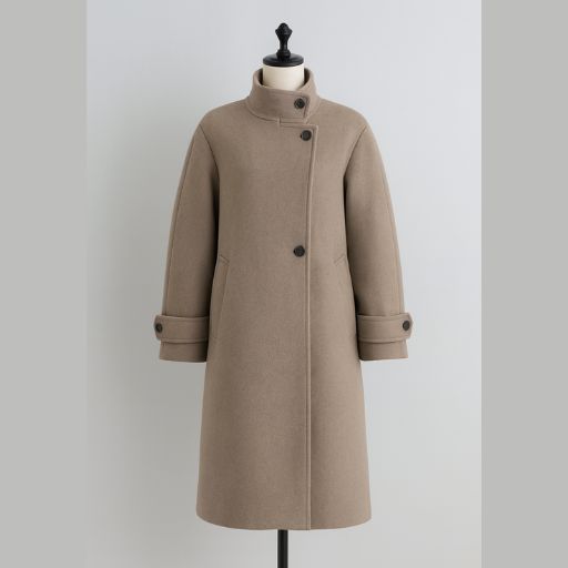 後ろ襟が高く、前襟が低いのが特徴のステンカラーコート。