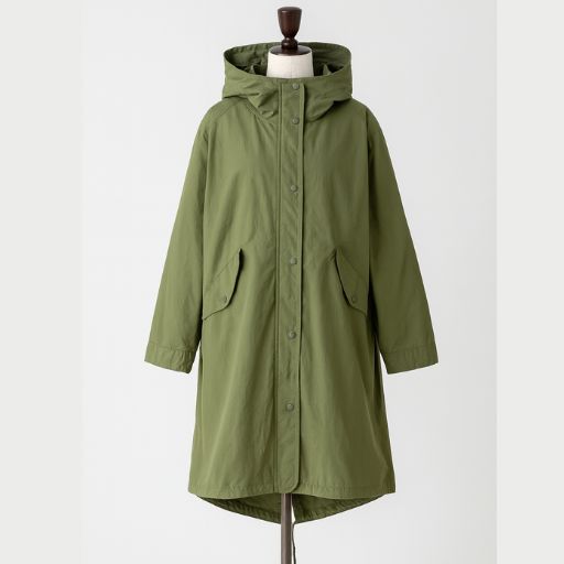 軽量で丈夫なナイロン素材は、機能性の高いコートに使用されます。