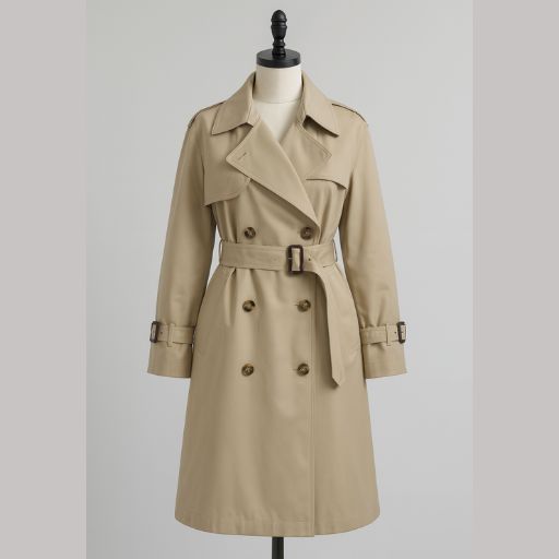 英国軍の防水コートが起源のトレンチコートは、ベルト付きのダブルブレストデザインが特徴です。