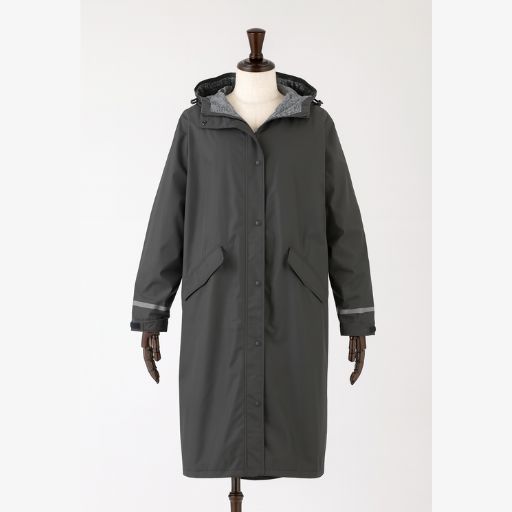 幅広い襟とゆったりしたシルエットで、防寒性と動きやすさを両立しています。コンパクトなデザインなので、身長が低い方でもバランス良く着こなせます。