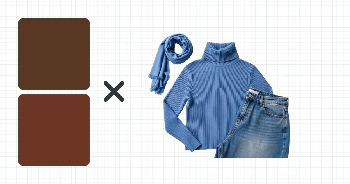 意外に思えるかもしれませんが、デニムブルーとブラウンは相性が良く、こなれ感のある秋冬コーデが作りやすい組み合わせです。