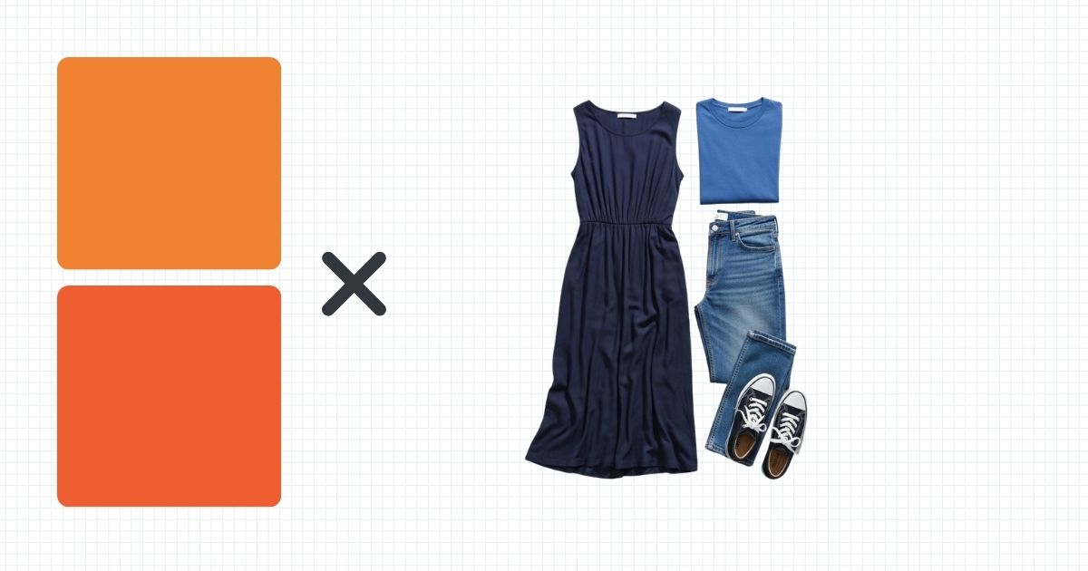 - 補色(イエロー・オレンジ系) は個性的なコーデを作りたいときに活用
