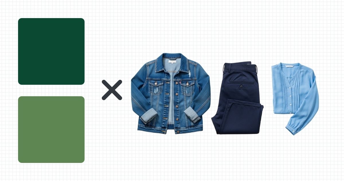 特に、少し暗めの緑やくすんだカーキグリーンは青を使ったカジュアルな着こなしにおすすめですよ。