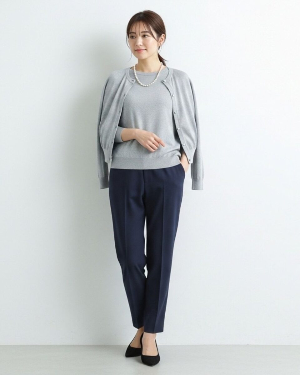ネイビーと合わせたオフィスコーデもすっきりとまとまって素敵ですよ。