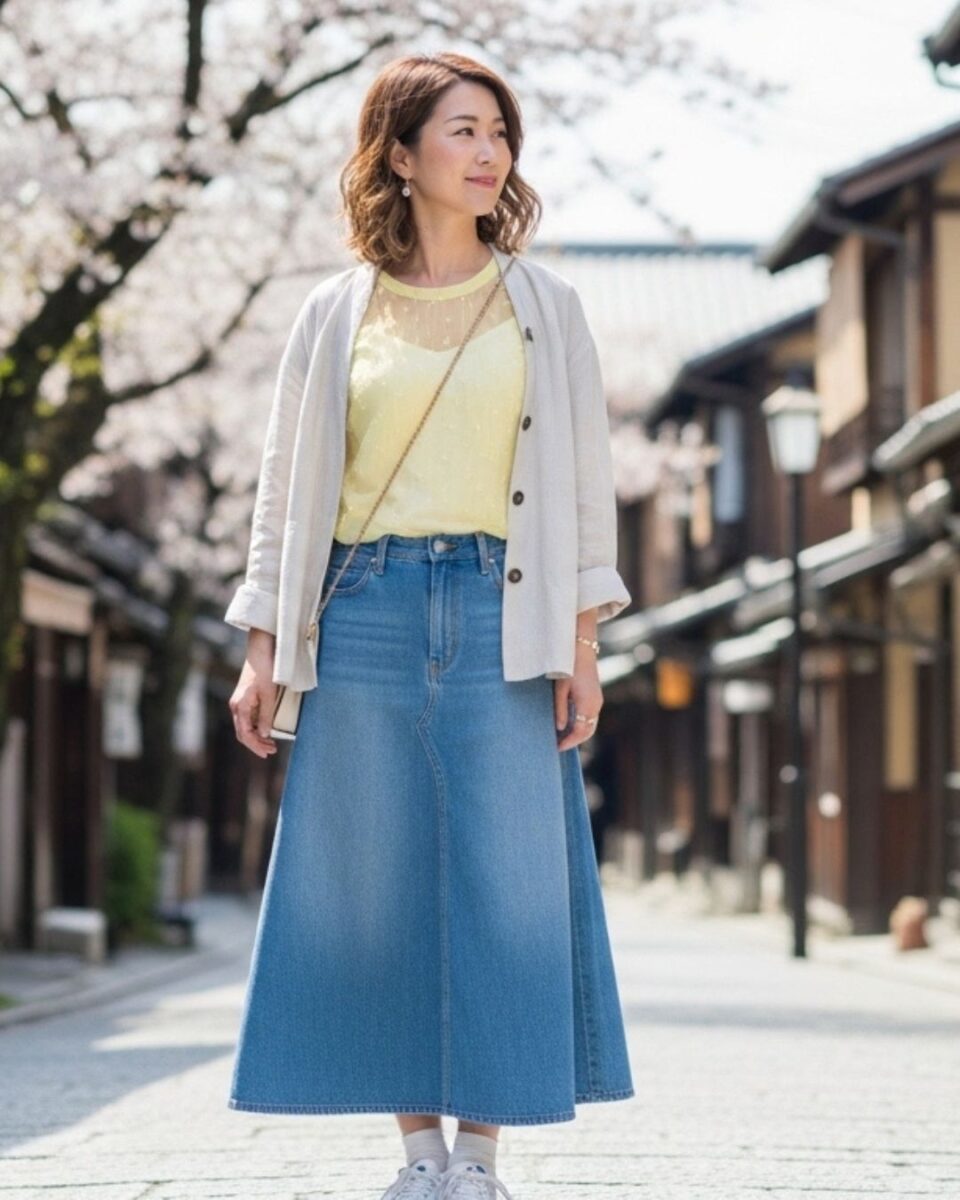 - ボトムス:デニム or スカート