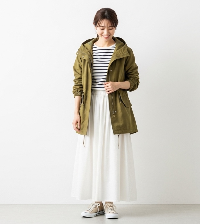 3月中旬は気温の変化が激しいため、重ね着スタイルが最適です。