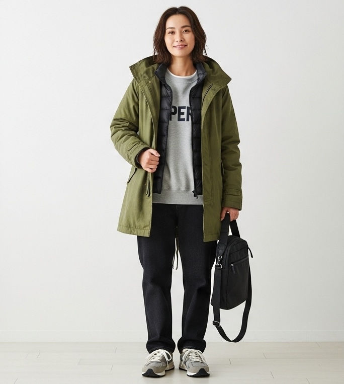 おすすめは、薄手のアウターの下にインナーダウンを仕込むスタイル