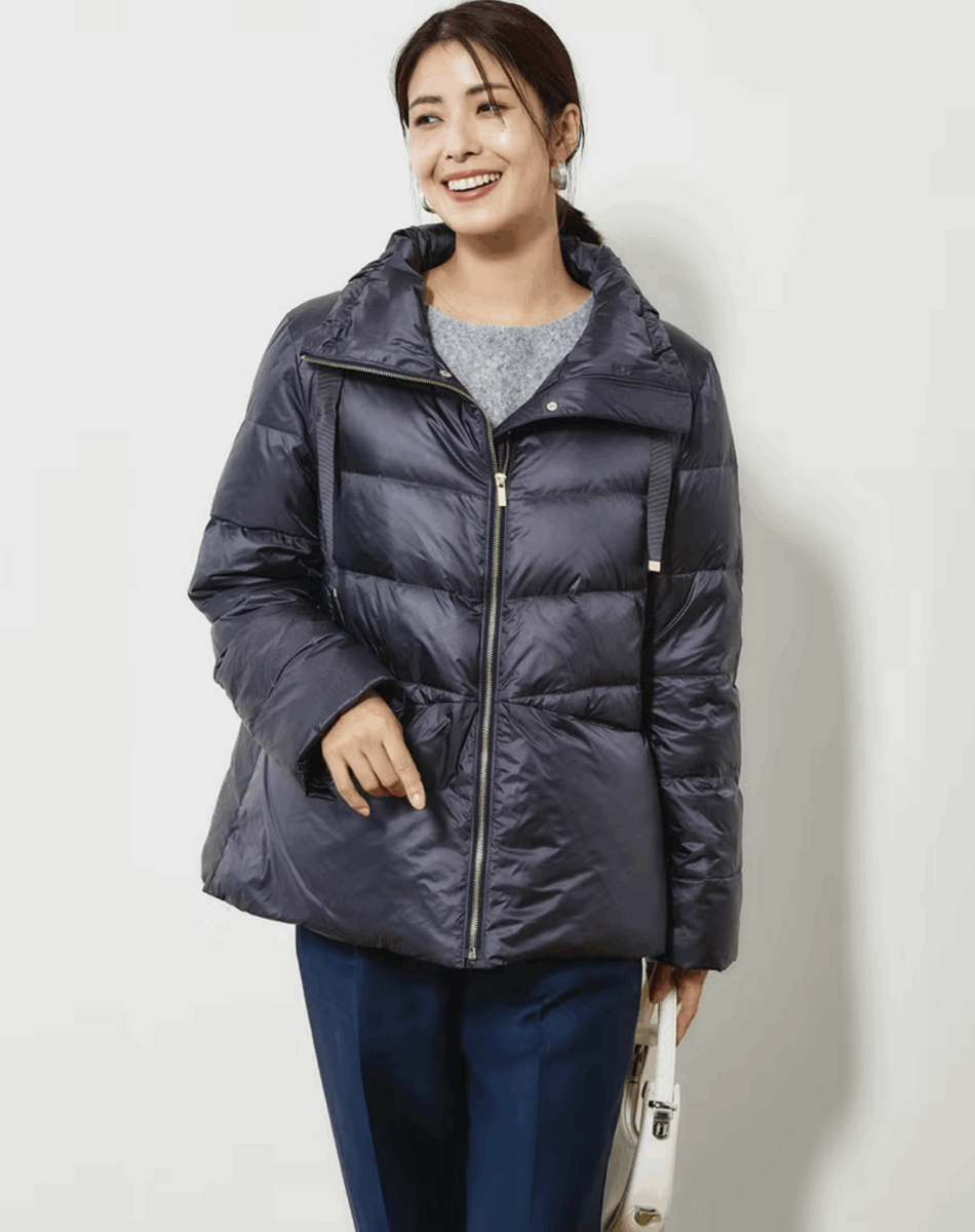 実は、デザインや素材を工夫すれば、ダウンでもスッキリと着痩せ効果を狙えます。