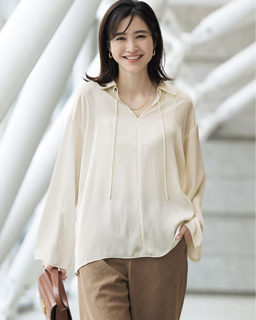 40代はとろみ素材やVネックで肉感を拾わない清潔感