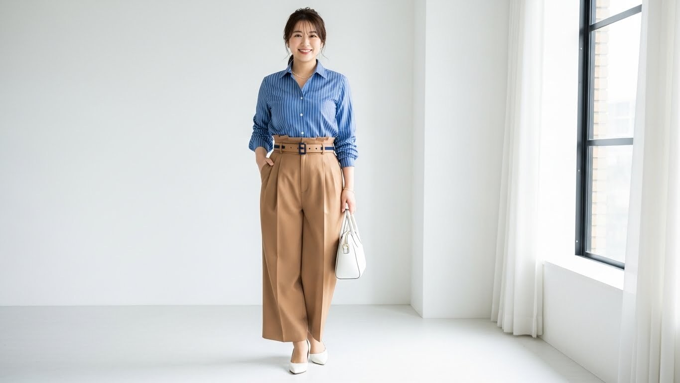体型をカバーしながらもおしゃれに見えるきれいめな着こなしのコツをお伝えします。
