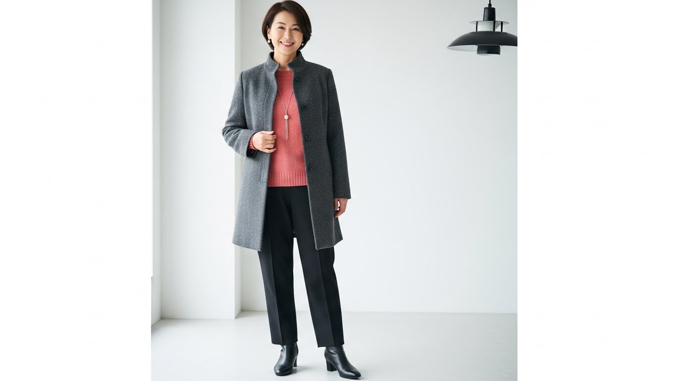 50代は上質なハリ感素材とIラインで品よくスタイルアップ