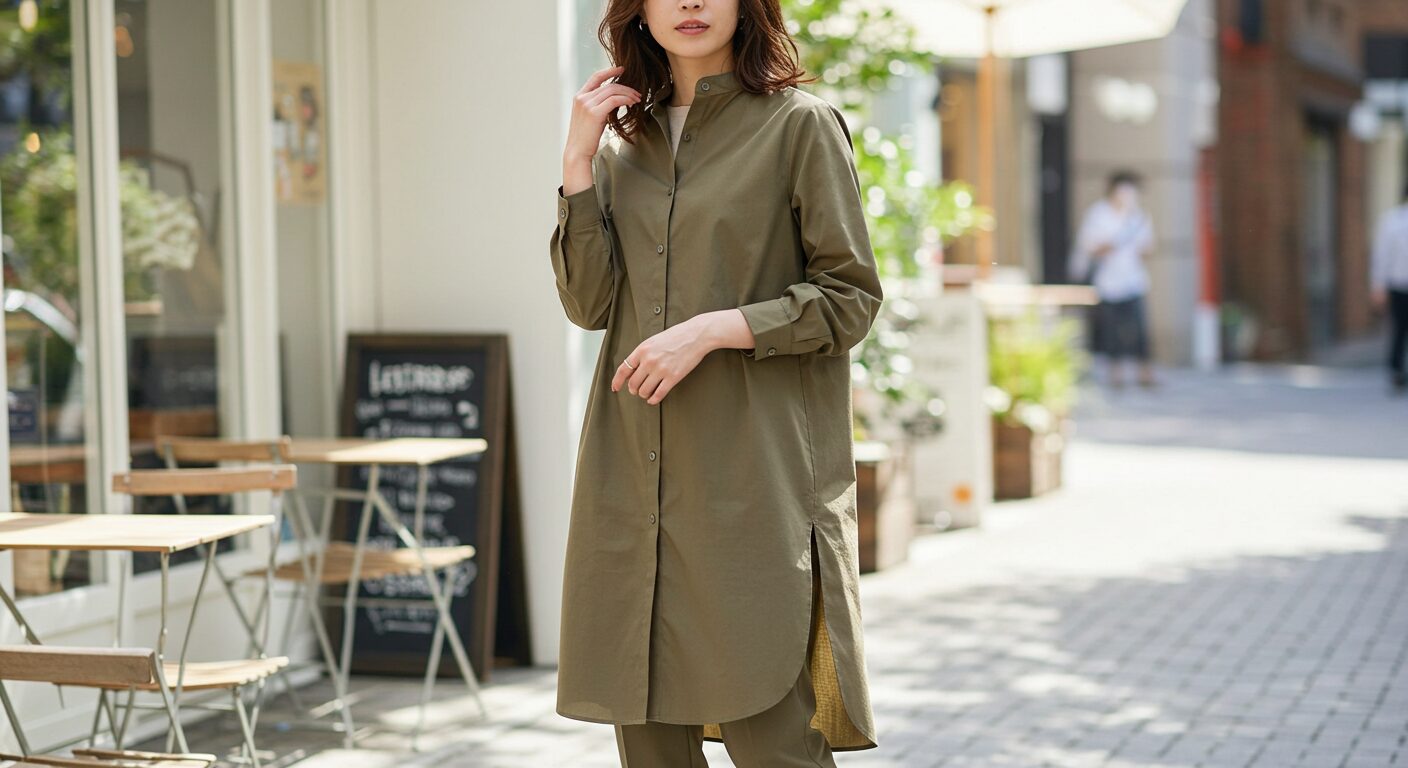 ロングシャツタイプなら、Iラインを強調してスタイルアップ効果も狙えます。