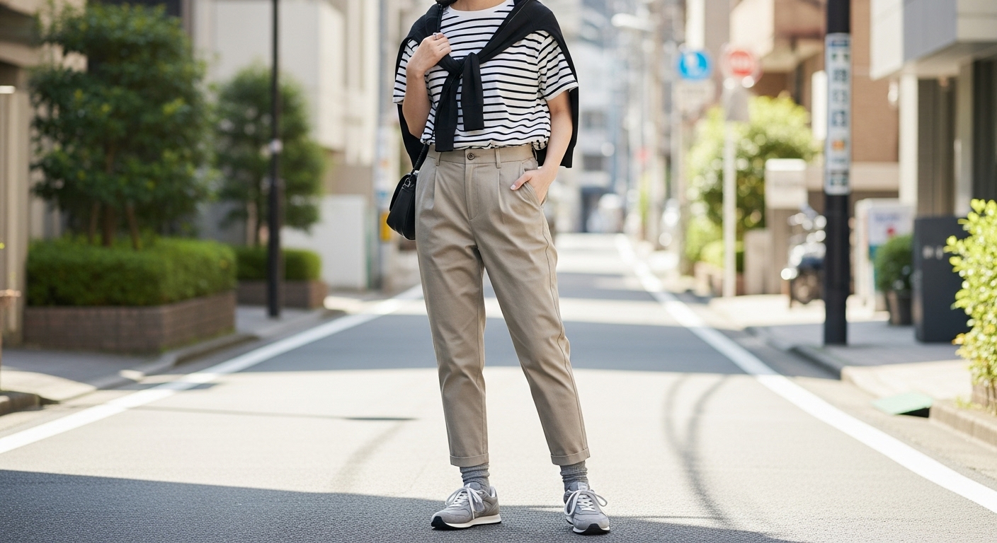 テーパードパンツとスニーカーを合わせるとき、ちょっとしたポイントを押さえるだけで、ぐっとおしゃれに見えるんです。