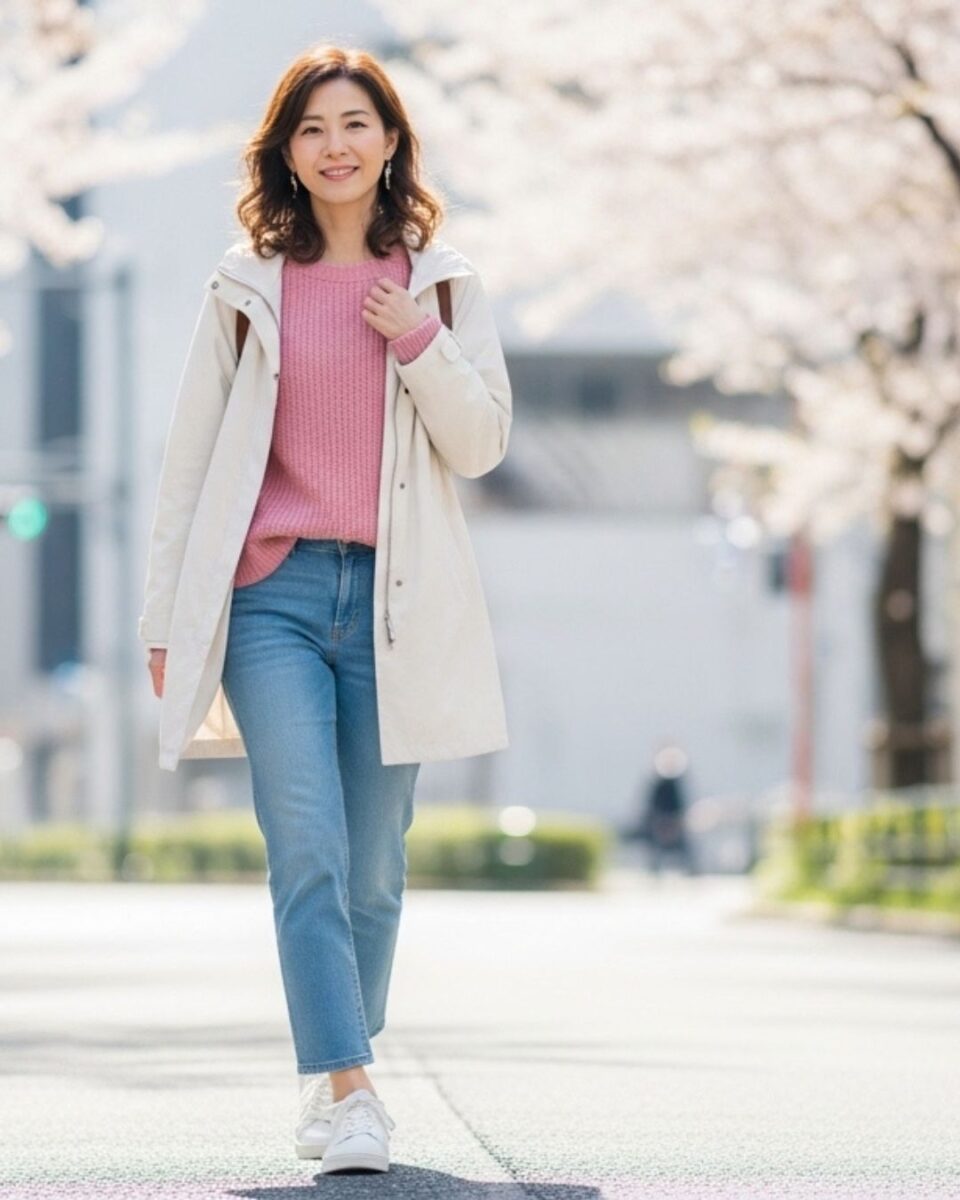 4月のコーデ選びに迷ったら、「淡色 × 動きやすいボトムス」の組み合わせが一番失敗しません。