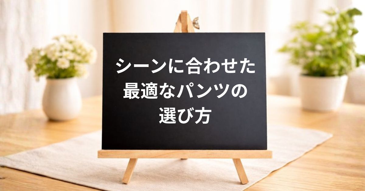 パンツを選ぶ際は、着用するシーンを意識することが大切です。