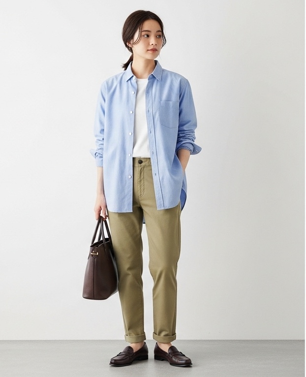 丈夫で動きやすく、カジュアルにもきれいめにも着こなせる万能アイテムです。